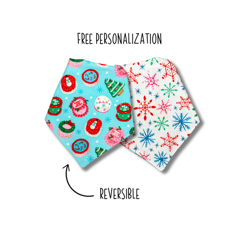Cakes and Snowflakes Christmas reversible dog bandana with soft macrame cord tie closure FREE Personalization