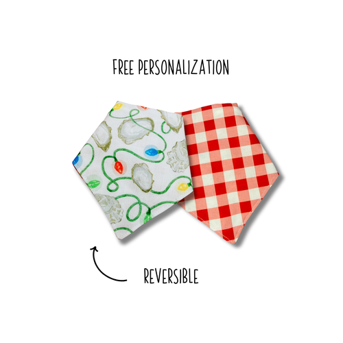 Oyster Christmas reversible dog bandana with soft macrame cord tie closure FREE Personalization