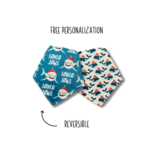 Santa Jaws and whales reversible dog bandana with soft macrame cord tie closure FREE Personalization