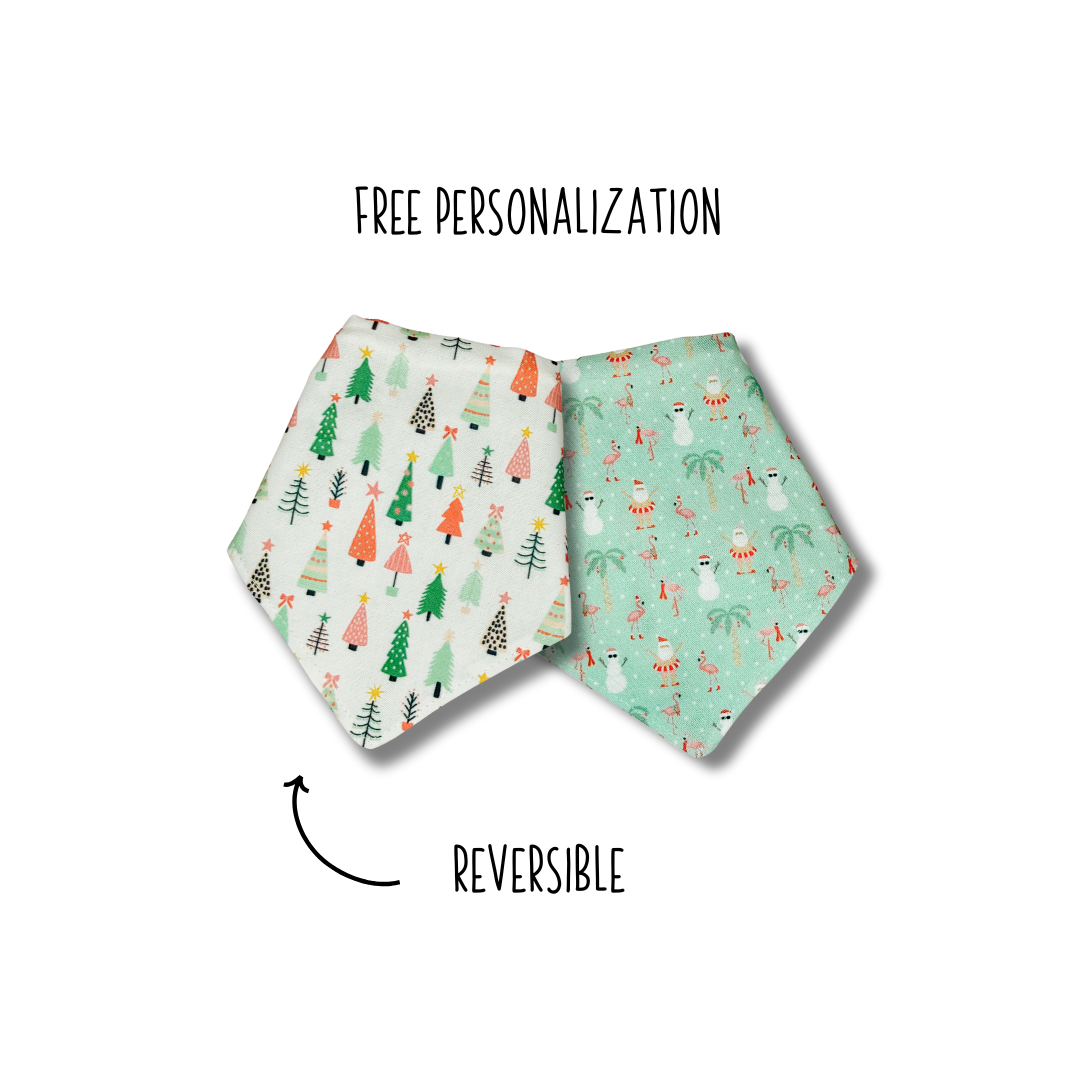 These products are made with and pastel Christmas trees and beach Santa reversible fabric. Look for matching bow tie. If you would like personalization, please add Name, Font and color in the notes