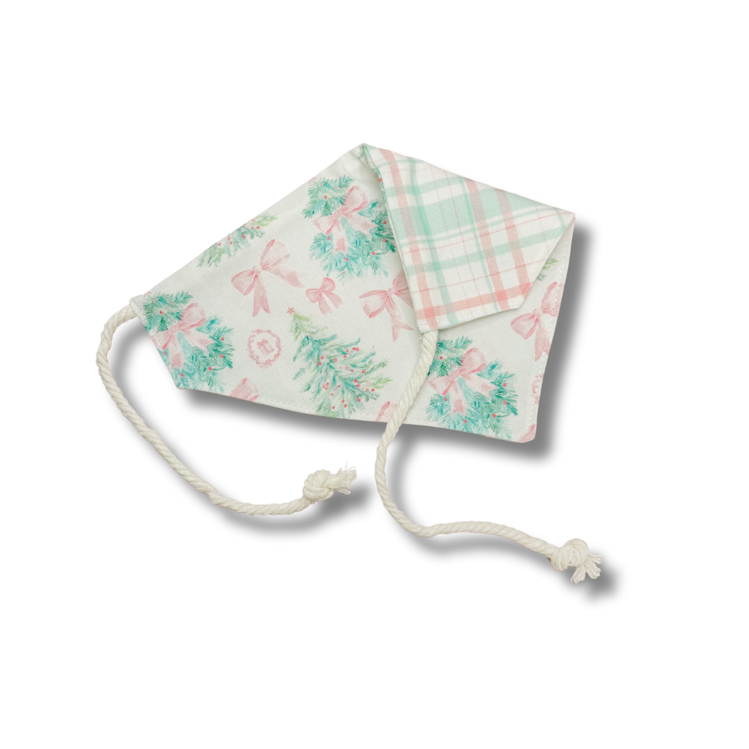 These products are made with and pastel Christmas trees, bows and plaid reversible fabric. Look for matching bow tie. If you would like personalization, please add Name, Font and color in the notes