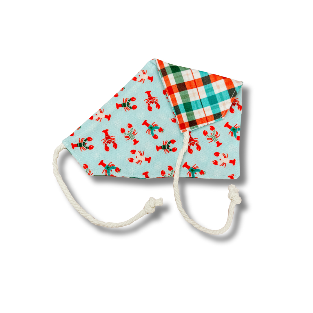 Christmas lobster and plaid Christmas reversible dog bandana with soft macrame cord tie closure FREE Personalization